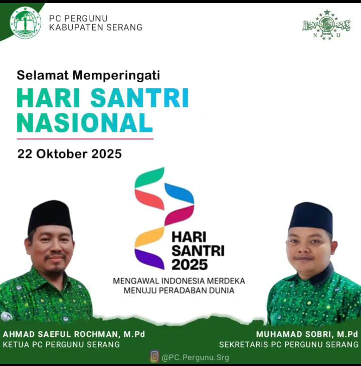 Serang – Dalam rangka memperingati Hari Santri Nasional 2025, Ahmad Saeful Rochman M. Pd Ketua Pc Pergunu Serang dan jajaran menyampaikan ucapan selamat dan apresiasi yang mendalam kepada seluruh santri di Indonesia, khususnya di wilayah Kabupaten Serang Banten, Rabu (22/10/2025)