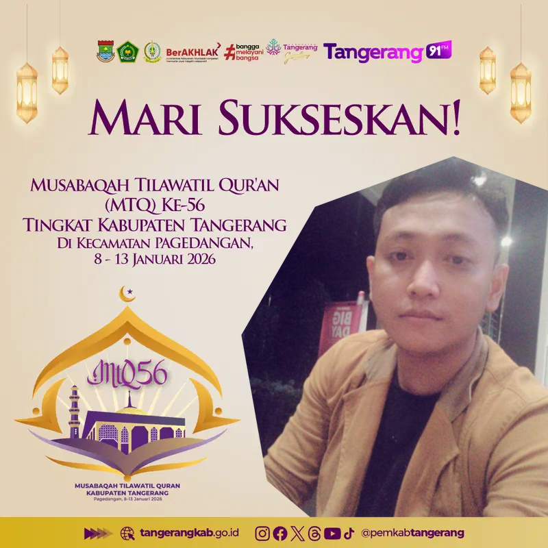 Ajakan tersebut di sampaikan seorang aktivis senior Ansyah Sandy yang juga merupakan pengusaha muda ini berharap agar acara MTQ ke-56 ini berjalan dengan lancar dan sukses, serta dapat menjadi sumber motivasi bagi pemerintah kecamatan dan desa di Kabupaten Tangerang.