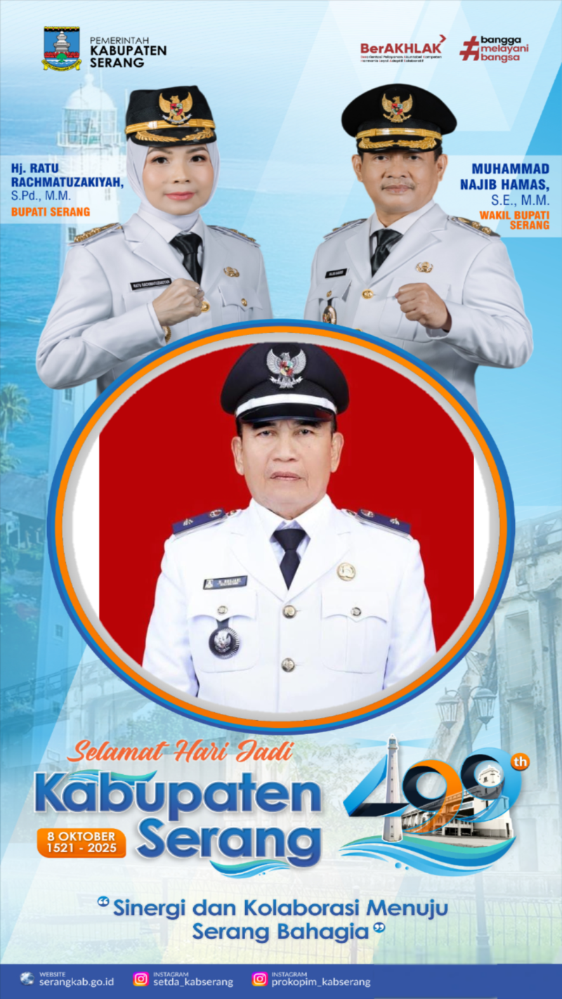 Selamat Hari Jadi Kabupaten Serang ke-499, Mari bersama-sama kita bangun Serang yang lebih berkelanjutan, sejahtera, berdaya saing, Sinergitas Berkolaborasi menuju Serang bahagia.