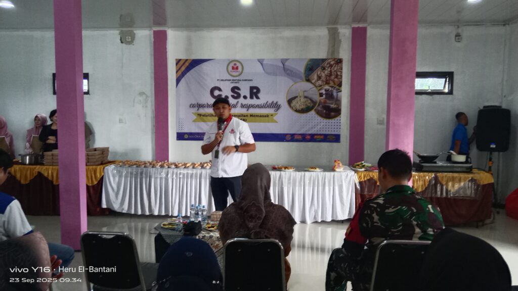 Tangerang – PT. Dellifood Sentosa Corpindo dari PT. Mayora Indah Jayanti menggelar Pelatihan Keterapilan Memasak untuk ibu ibu yang bertempat di Aula Kantor Desa Pasir Muncang, Kecamatan Jayanti, Kabupaten Tangerang, pada Selasa, (23/09/2025)
