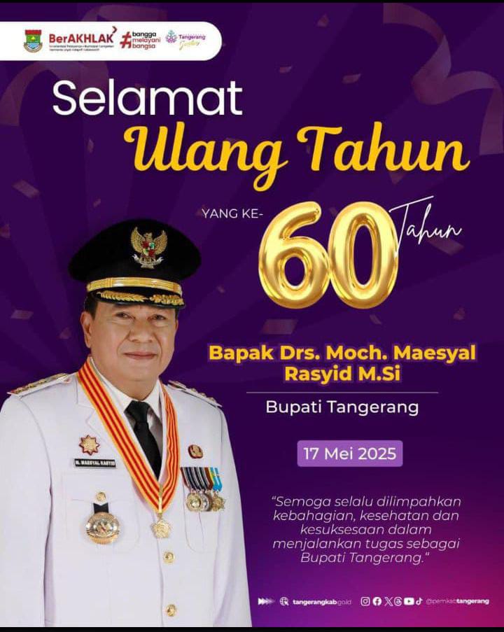 Tangerang – Mei menjadi bulan spesial bagi Bupati Tangerang H. Moch. Maesyal Rasyid, di hari ulang tahun nya yang ke-60, Bupati Tangerang mendapat ucapan dari berbagai kalangan, termasuk dari Owner PT. Timor Lintas Nusantara (TLN) Virgilio da Cruz, Sabtu, (17/05/2025)